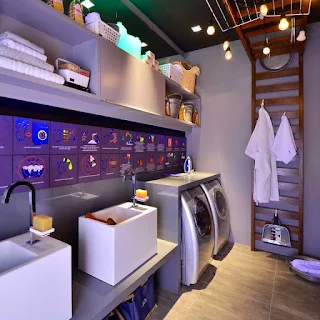 Contoh desain interior ruang cuci minimalis dan ruang setrika sederhana. Desain ruang cuci yang efektif dan efesien.